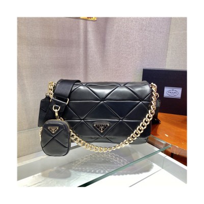 [프라다]Prada 2021 Women's Leather Shoulder Bag,21cm - 프라다 2021 여성용 레더 숄더백,21cm,PRAB0333,블랙