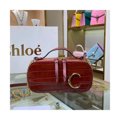 • Chole 2020 C Vanity Leather Chain Tote Shoulder Bag, 19cm - 끌로에 2020 C 베니티 레더 체인 토트 숄더백,CLB0188,19cm,브라운