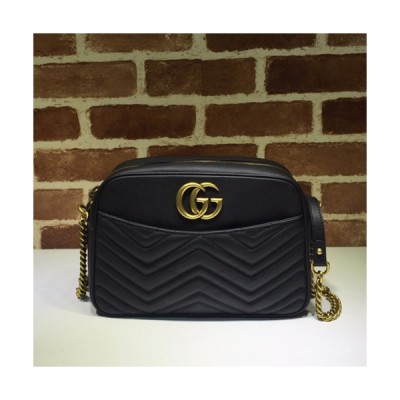 Gucci 2020 GG Marmont Matlase Leather Women Shoulder Bag,28CM - 구찌 2020 GG 마몬트 마틀라세 레더 여성용 숄더백 443499,GUB0962,28CM,블랙 > 가방