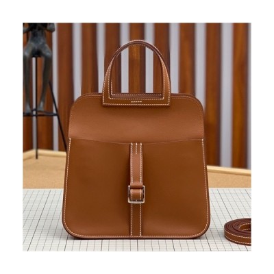 Hermes 2019 Halzan Leather Tote Shoulder Bag ,22cm - 에르메스 2019 할잔 레더 여성용 토트 숄더백 HERB0741,22cm,브라운 > 가방