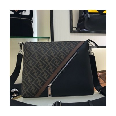 • Fendi 2019 PVC & Leather Shoulder Bag, 31cm - 펜디 2019 PVC & 레더 남여공용 숄더백,FENB0422,31cm,브라운+블랙