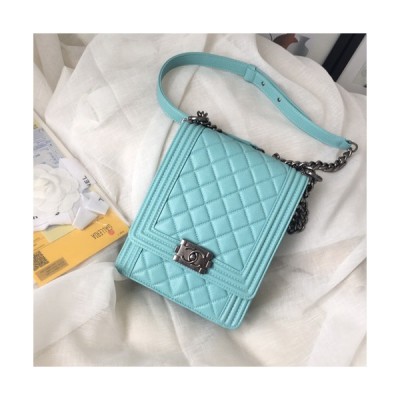 Chanel 2019 Boy Leather Chain Shoulder Bag ,19.5CM - 샤넬 2019 보이 레더 체인 숄더백 CHAB0788,19.5CM,스카이블루