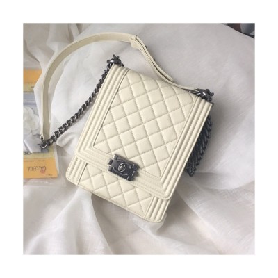 Chanel 2019 Boy Leather Chain Shoulder Bag ,19.5CM - 샤넬 2019 보이 레더 체인 숄더백 CHAB0786,19.5CM,화이트