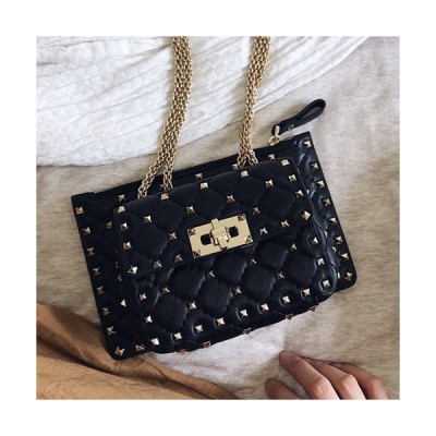 Valentino 2019 Leather Garavani Rockstud Spike Chain Shoudler Bag,20CM - 발렌티노 2019 레더 가라바니 락스터드 스파이크 체인 숄더백,VTB0189,20CM,블랙 > 가방