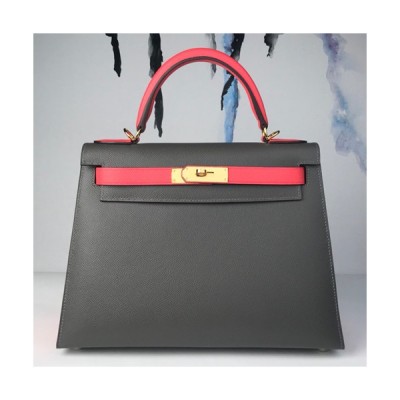 Hermes Kelly Epsom Leather Tote Shoulder Bag ,28cm - 에르메스 켈리 엡송 레더 여성용 토트 숄더백 HERB0358,28cm,그레이+핑크 > 가방