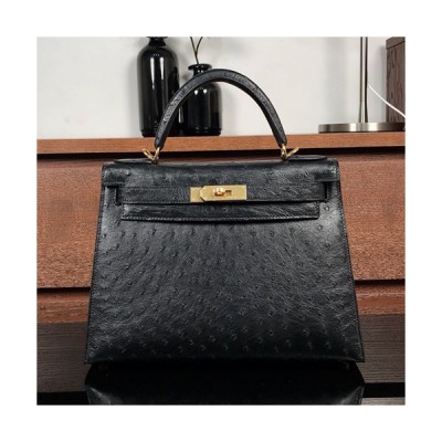 Hermes Kelly Ostrich Leather Tote Shoulder Bag ,28cm - 에르메스 켈리 오스트리치 레더 여성용 토트 숄더백 HERB0270,28cm,블랙 > 가방
