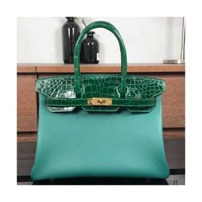 Hermes Birkin Crocodile & Togo Leather Tote Shoulder Bag ,30cm - 에르메스 버킨 크로코다일&토고 레더 여성용 토트 숄더백 HERB0108,30cm,그린 > 가방
