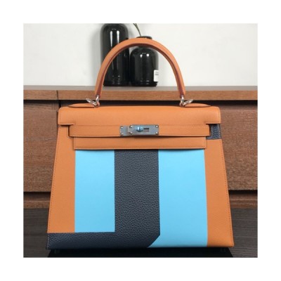 Hermes Kelly Leather Tote Shoulder Bag ,28cm - 에르메스 켈리 레더 여성용 토트 숄더백 HERB0102,28cm,브라운+블루