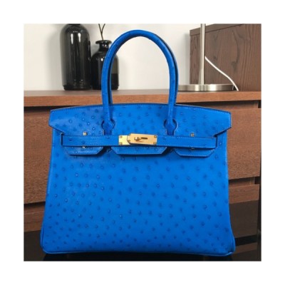 Hermes Birkin Ostrich Leather Tote Shoulder Bag ,30cm - 에르메스 버킨 오스트리치 레더 여성용 토트 숄더백 HERB0024,블루,30cm