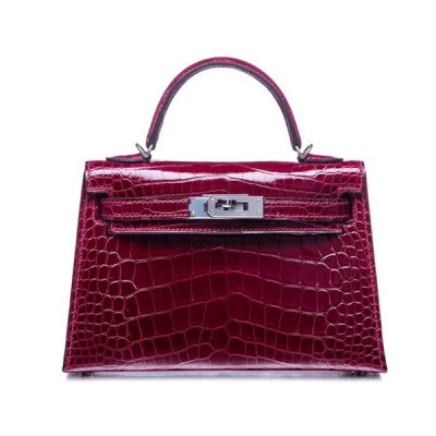 Hermes Mini Kelly 2 Crocodile Leather Tote Shoulder Bag , - 에르메스 미니 켈리 2 크로커다일 레더 여성용 토트 숄더백 HERB0021,와인