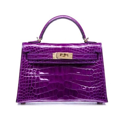 Hermes Mini Kelly 2 Crocodile Leather Tote Shoulder Bag , - 에르메스 미니 켈리 2 크로커다일 레더 여성용 토트 숄더백 HERB0019,퍼플 > 가방