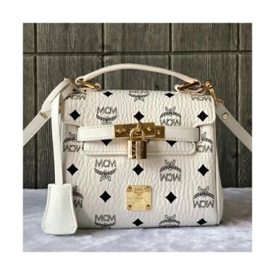 MCM Visetos Leather Tote Shoulder Bag,18.5cm - 엠씨엠 여성용 비세토스 레더 토트 숄더백 MCMB0047, 18.5cm,화이트