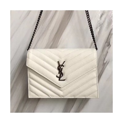 Saint Laurent Women Monogram Chain Shoulder Bag ,19CM - 입생로랑 여성용 모노그램 체인 숄더백 393953, SLB0263,19CM,화이트 > 가방