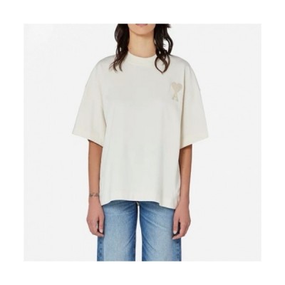 Ami 2021 Mm/Wm 'Ami de Coeur' Casual Cotton Short Sleeved Tshirt Ivory - 아미 2021 남/녀 로고 코튼 캐쥬얼 반팔티 Ami0106x Size(s > 의류