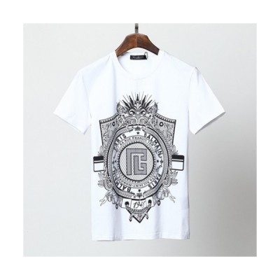 • Balmain Mens Logo Cotton Short Sleeved Tshirs White - 발망 2021 남성 로고 코튼 반팔티 Bam0135x Size(m