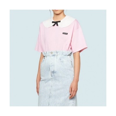Miumiu Womens Cotton Short Sleeved Tshirt Pink - 미우미우 2021 여성 코튼 반팔티 Miu0215x Size(xs 요약정보 및 구매