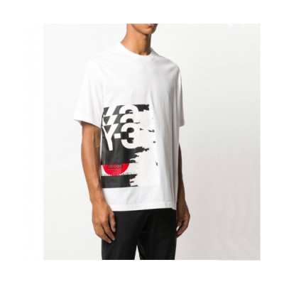 Y-3 Mens Logo Basic Cotton Short Sleeved Tshirts White > 의류