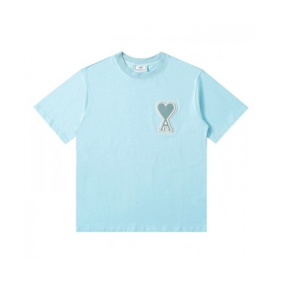 • Ami 2021 Mm/Wm Casual Cotton Short Sleeved Tshirt Blue - 아미 2021 남/녀 로고 코튼 캐쥬얼 반팔티 Ami0133x Size(m
