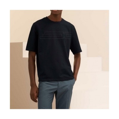 Hermes Mens Crew-neck Short Sleeved Tshirts Black > 의류