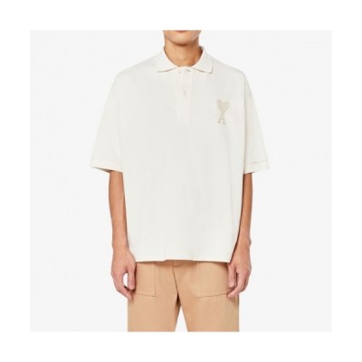 • Ami Mm/Wm Casual Cotton Short Sleeved Tshirt Ivory - 아미 2021 남/녀 로고 코튼 캐쥬얼 반팔티 Ami0145x Size(s