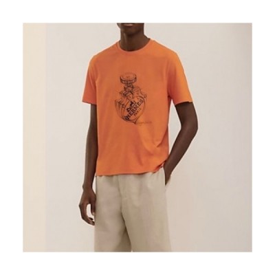 Hermes Mens Crew-neck Short Sleeved Tshirts Orange > 의류