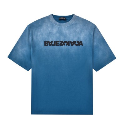 발렌시아가 남자 크루넥 블루 반팔티 - Unisex Blue Tshirts > 의류