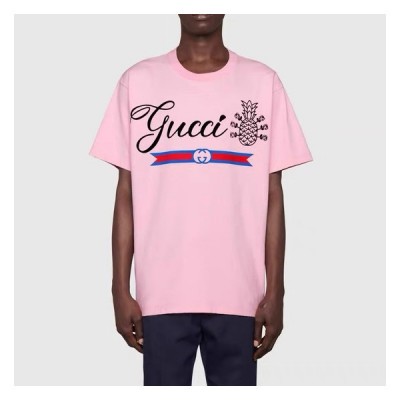 • 구찌 남자 크루넥 핑크 반팔티 - Unisex Pink Tshirts