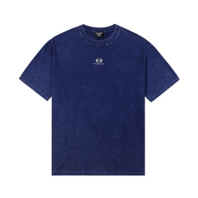 발렌시아가 남성 크루넥 블루 반팔티 - Mens Blue Tshirts > 의류