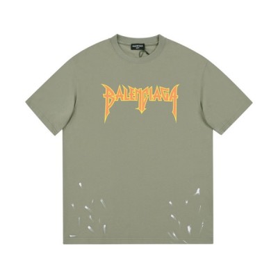 발렌시아가 남성 크루넥 그린 반팔티 - Mens Green Tshirts > 의류
