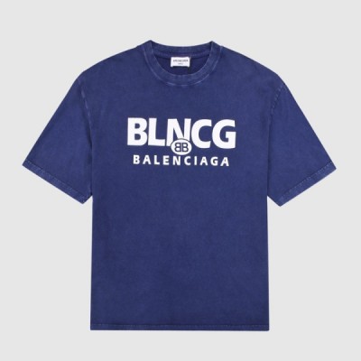 발렌시아가 남성 크루넥 블루 반팔티 - Mens Blue Tshirts > 의류