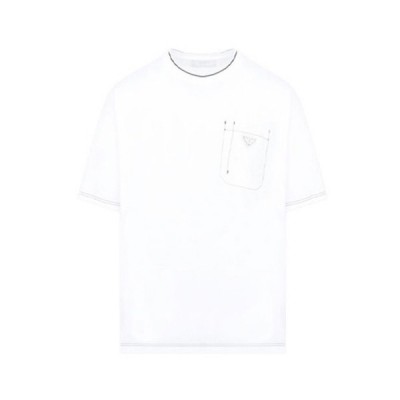 프라다 남성 화이트 크루넥 반팔티 - Mens White Tshirts > 의류