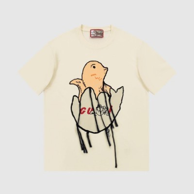 • 구찌 남/녀 크루넥 아이보리 반팔티 - Unisex Ivory Tshirts