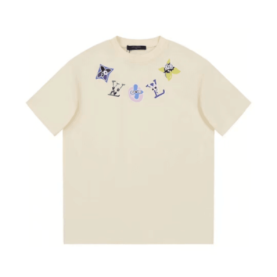 • 2023 루이비통 남성 아이보리 크루넥 반팔티 - Mens Ivory Tshirts