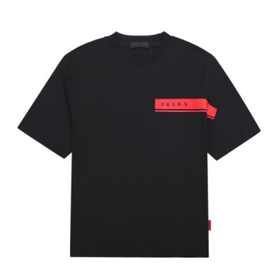 프라다 남성 크루넥 블랙 반팔티 - Mens Black Tshirts > 의류