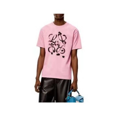 • 로에베 남성 이니셜 핑크 반팔티 - Mens Pink Tshirts