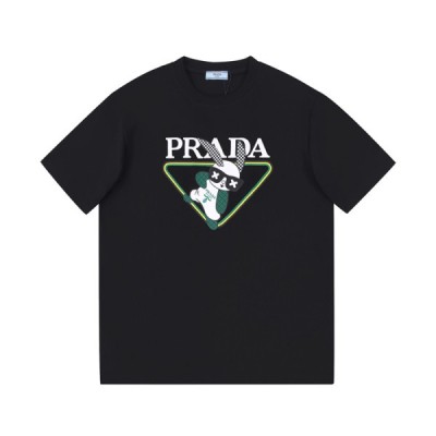 프라다 남성 크루넥 블랙 반팔티 - Mens Black Tshirts > 의류