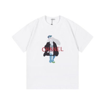 • 샤넬 남/녀 크루넥 화이트 반팔티 - Chanel Unisex White Tshirts