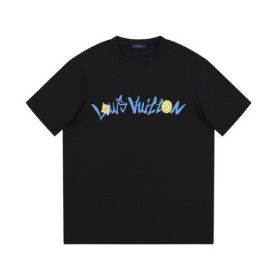 루이비통 남성 블랙 크루넥 반팔티 - Louis vuitton Mens Black Short sleeved T > 의류