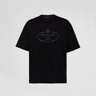 프라다 남성 크루넥 블랙 반팔티 - Prada Mens Black Short sleeved Tshirts > 의류