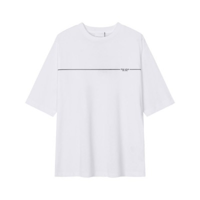프라다 남성 크루넥 화이트 반팔티 - Prada Mens White Short sleeved Tshirts > 의류