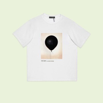 프라다 남성 크루넥 화이트 반팔티 - Prada Mens White Short sleeved Tshirts > 의류
