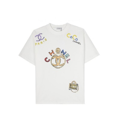 • 샤넬 남/녀 크루넥 화이트 반팔티 - Chanel Unisex White Tshirts