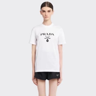 • 프라다 여성 화이트 반팔 티셔츠 - Prada Women White Tshirts