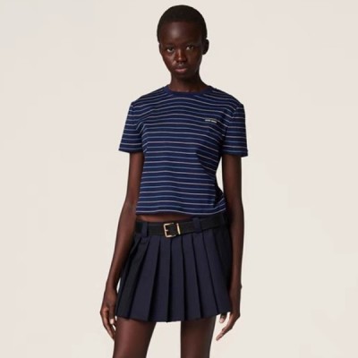 • 미우미우 여성 네이비 반팔 티셔츠 - Miumiu Ladys Navy Tshirts