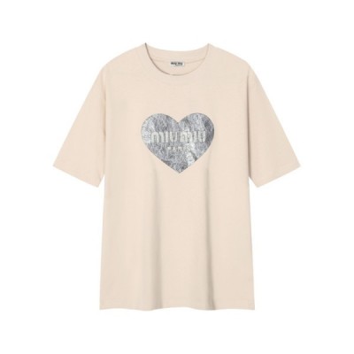 미우미우 여성 베이지 티셔츠 - Miumiu Ladys Beige Tshirts > 의류