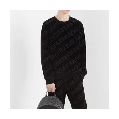 Fendi Mens Logo Crew-neck Cotton Tshirts Black > 의류