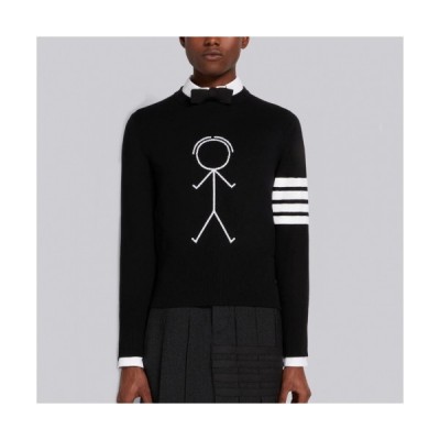 • Thom Browne Mm/Wm Strap Crew-neck Wool Sweaters Navy