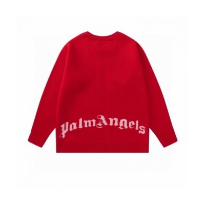 Palm Angels Mens Logo Crew-neck Sweaters Red > 의류