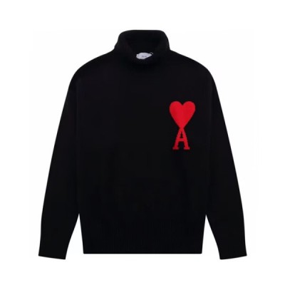 Ami Unisex Logo Casual Turtle-neck Sweaters Black 요약정보 및 구매