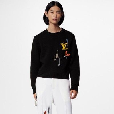 루이비통 남성 블랙 크루넥 니트 - Louis vuitton Mens Black Sweaters > 의류